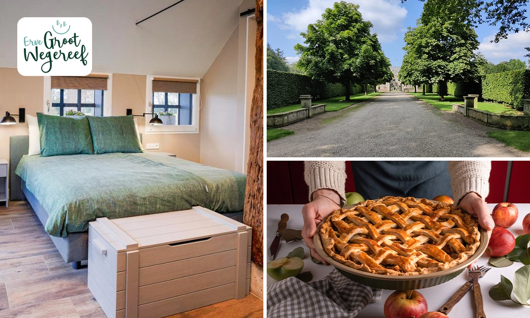Voor 2 personen: 1, 2 of 3 overnachting(en) in het rustgevende Twente bij B&B Erve Groot Wegereef, inclusief streekontbijt, ontvangst met warme drank en lekkernij, en eventueel 1 of 2 voucher(s) voor activiteit(en) naar keuze