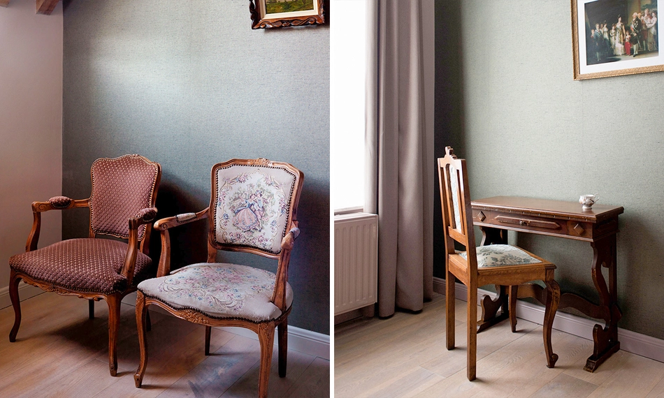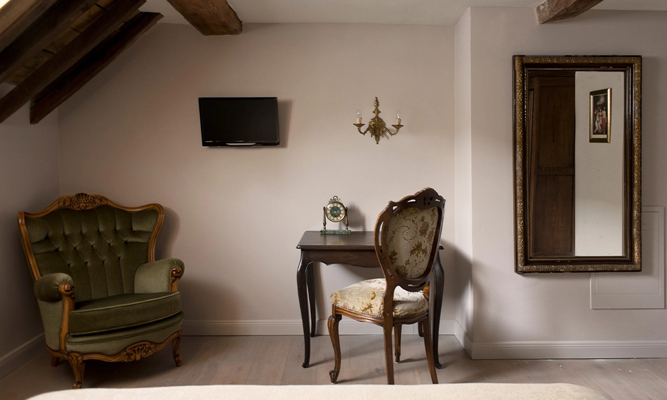Iedere kamer is uniek ingericht in een Franse stijl. Daarnaast is het monumentale karakter van het hotel volledig behouden: het prachtige glas-in-lood, originele schouwen en openhaarden en oude ornamenten zijn onaangetast gebleven.