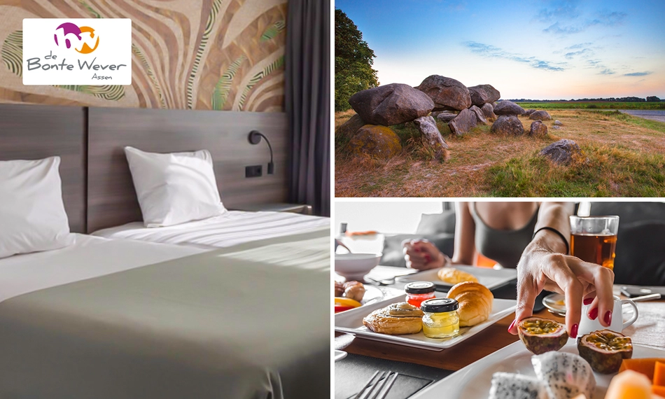 Ontdek de prachtige natuur van Drenthe samen met je favoriete gezelschap vanuit 4-sterrenhotel De Bonte Wever in Assen. Jullie overnachten in een standaard tweepersoonskamer die van alle gemakken is voorzien zoals wifi, koffie- en theefaciliteiten, flatscreen-tv, inloopdouche en meer. 's Ochtends genieten jullie van een heerlijk ontbijt voor de perfecte en energieke start van jullie dag!