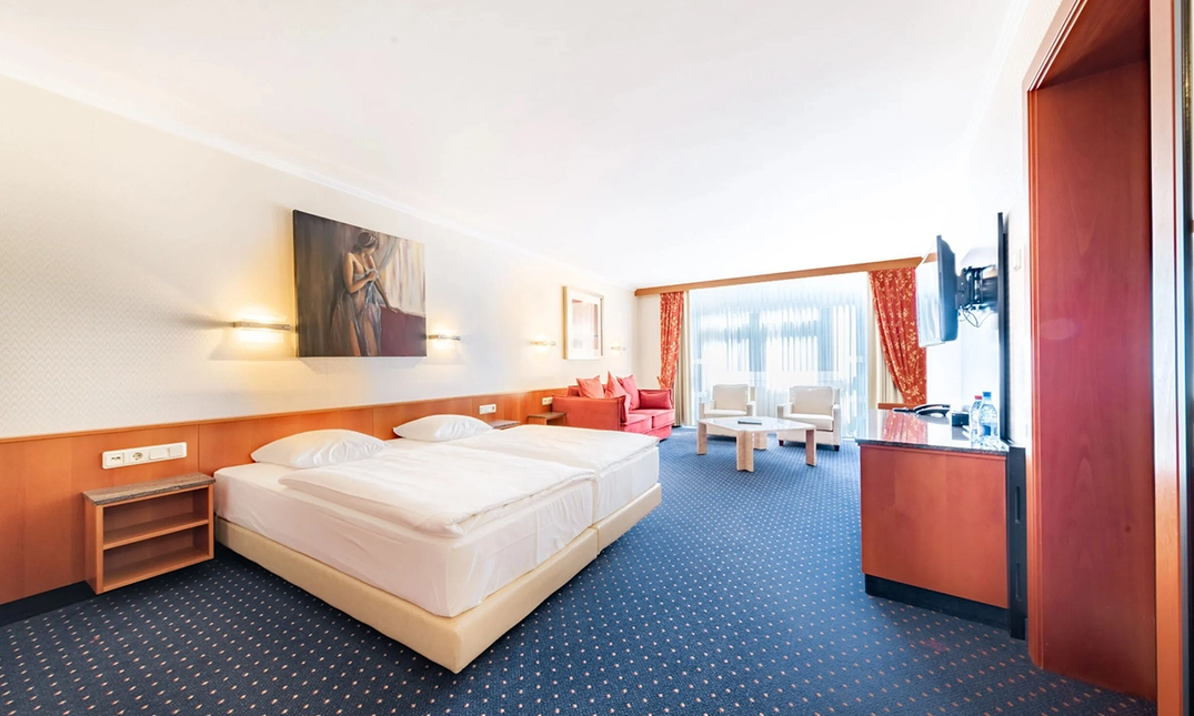Op zoek naar een onvergetelijke vakantie voor twee? Maak het jezelf dan gemakkelijk in het 4-sterren Koener Hotel. Je verblijft in een comfortabele tweepersoonskamer met een tijdloze stijl. Je kamer is van alle gemakken voorzien, zoals een flatscreentelevisie, een eigen badkamer en gratis WiFi.