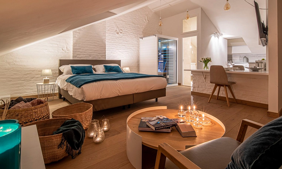 Achter de elegante gevel gaat een uitzonderlijke plek schuil, waar oude stenen, gedempte verlichting en rustgevende geuren een verfijnde en zen-achtige sfeer creëren. Elke suite heeft een eigen spa, waardoor je samen even helemaal kunt ontspannen. Kom langs met je geliefde en geniet van een onvergetelijke tijd!