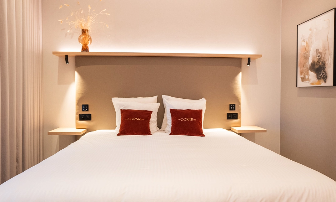 Voor 2 personen: overnachting in een deluxe kamer inclusief ontbijt en late check-out aan de Belgische kust bij 4-sterren superior hotel The CORNR Hotel
